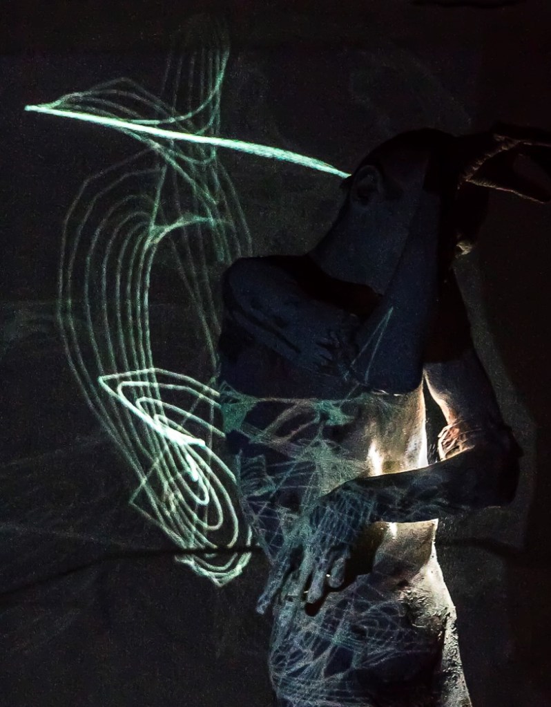 Depuis 2011, les performances Digital Butoh explorent l’espace psycho-algorythmique sous forme de danse interactive:
